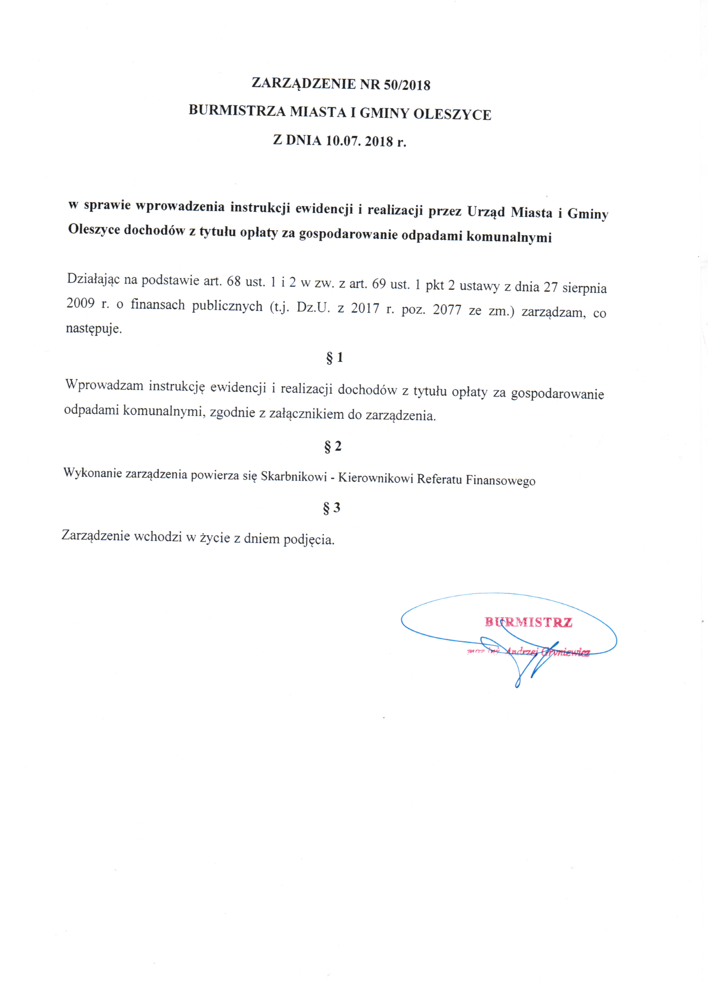 Zarządzenie nr 50/2018