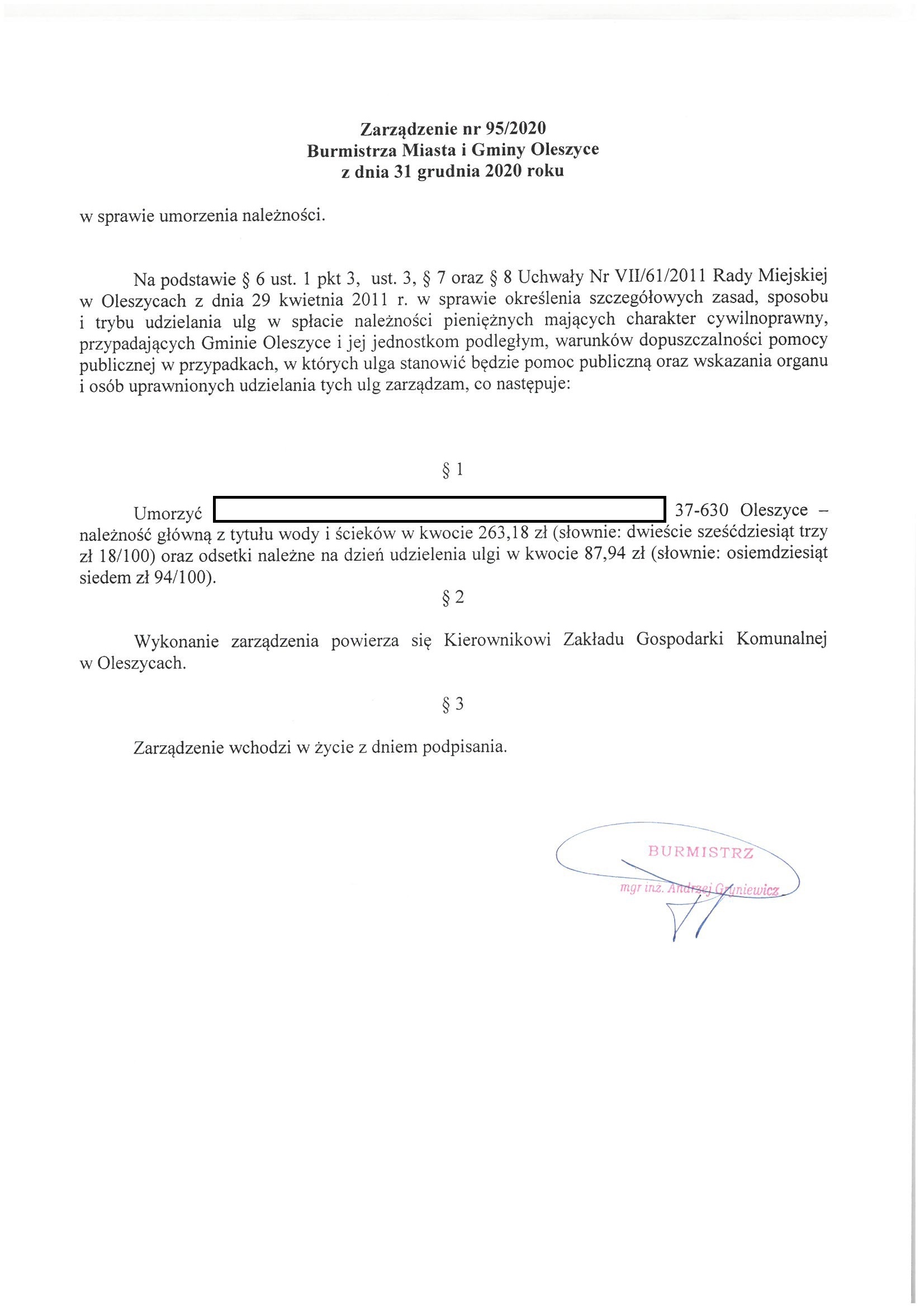 | Podmiot publikujący | Urząd Miasta i Gminy Oleszyce |