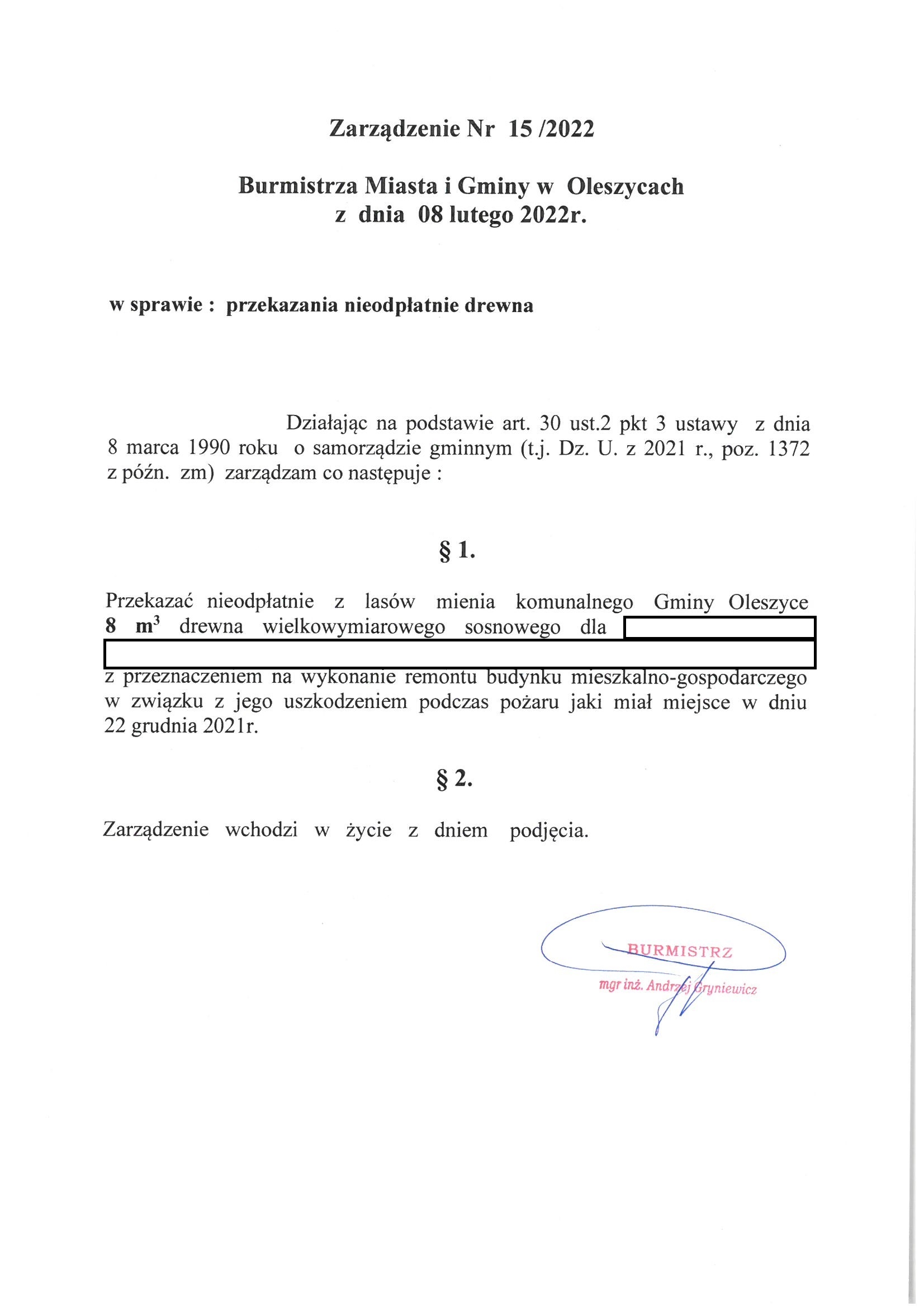 Zarządzenie nr 15/2022